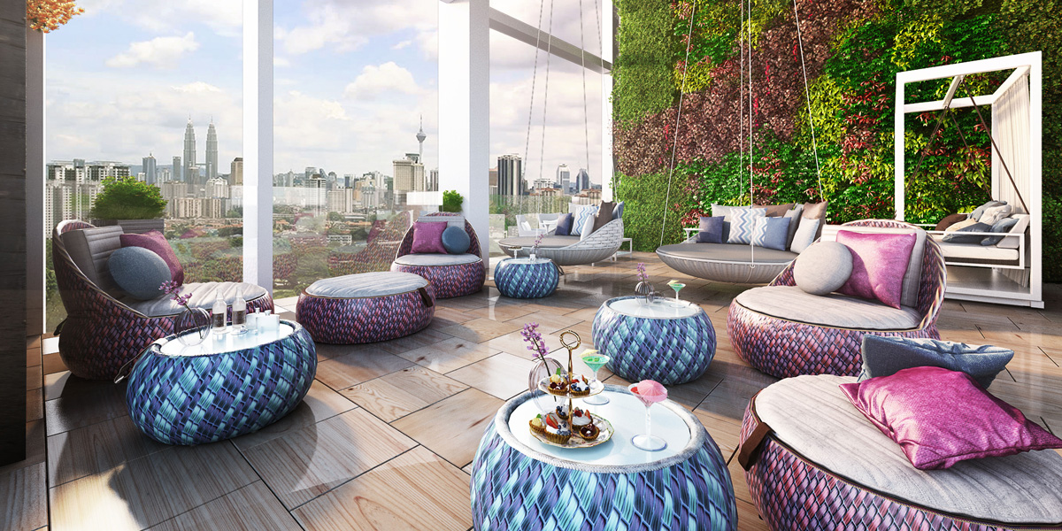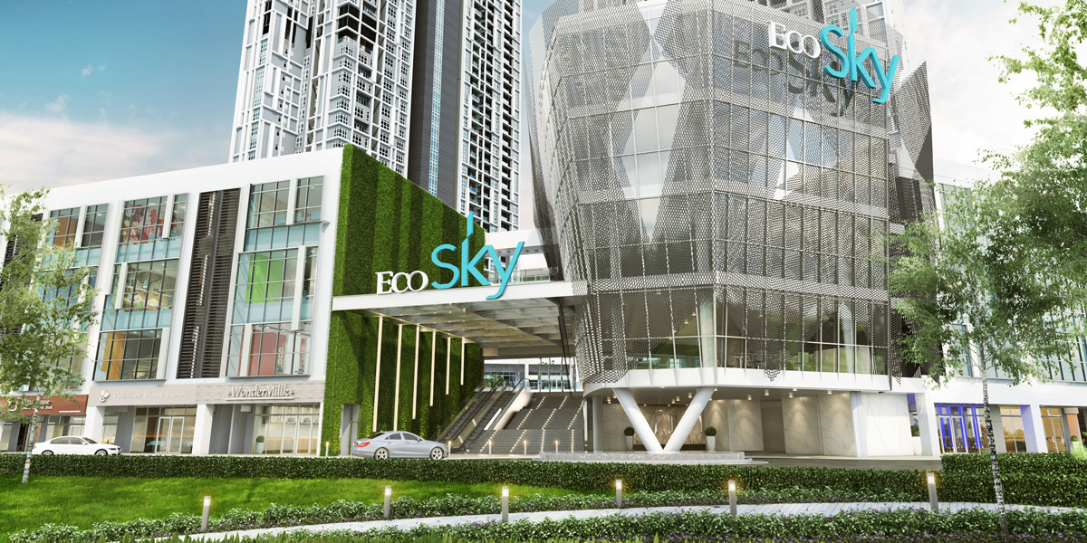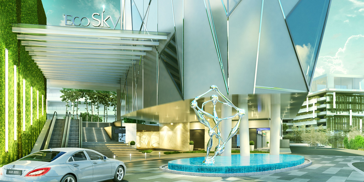 Set in 9.6 acres of prime freehold land in Kuala Lumpur, Eco Sky is an integrated development designed to offer discerning denizens of the city an enthralling 360º living experience. Eco Sky comprises commercial and residential blocks placed around a generous 2.7-acre park. True to its name, the three main towers reach for the sky, rising to commanding heights above the scenic surroundings. The architecture ties the clouds with the nearby lake on earth, and each tower is capped by a transparent crown lush with cascades of greenery.